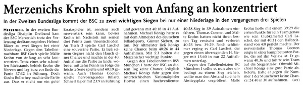 Nach 14 Jahren Zugehörigkeit zur 2. Bundesliga Dreiband Gruppe B ist