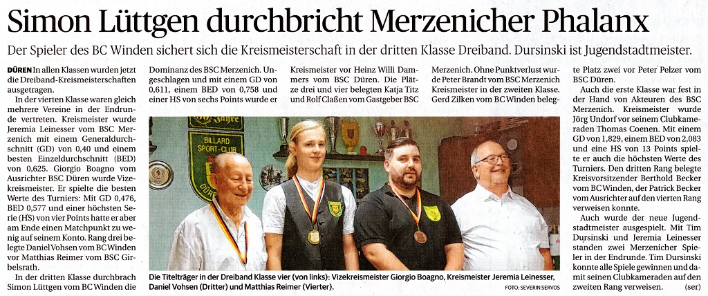 Billard - Presse im Kreis Düren
