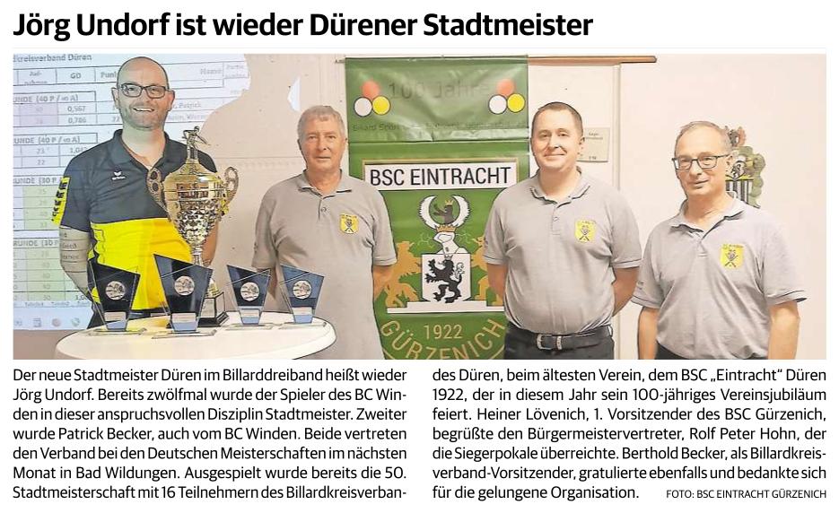 Stadtmeister Düren im Billarddreiband . . . . . Bericht