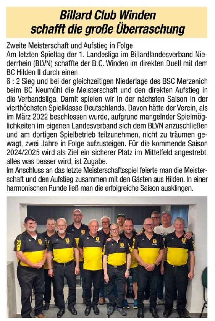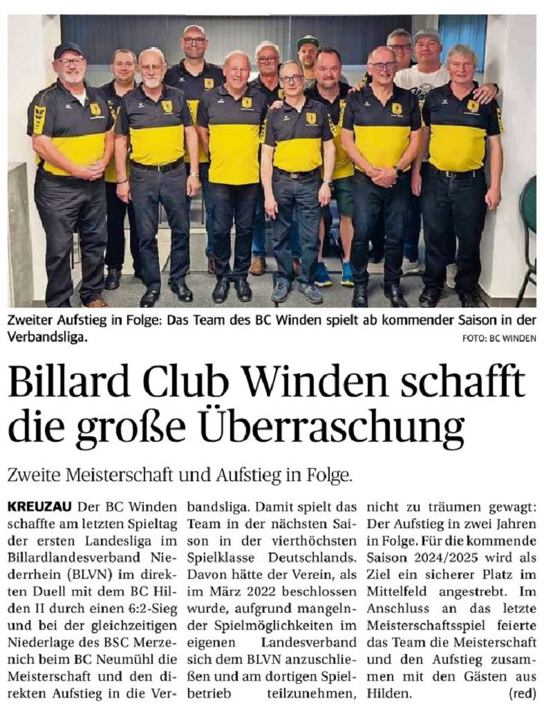 Billard Club Winden schafft die