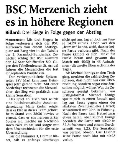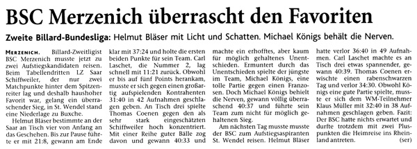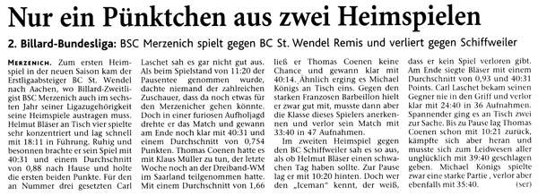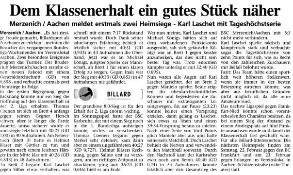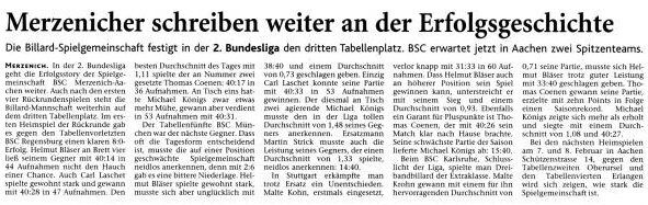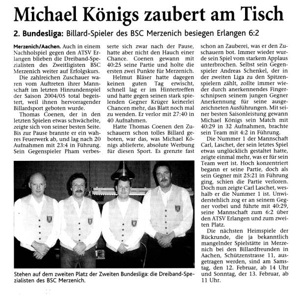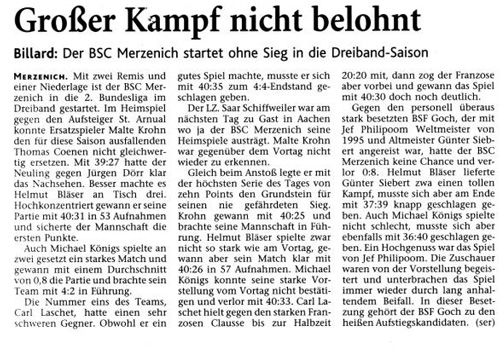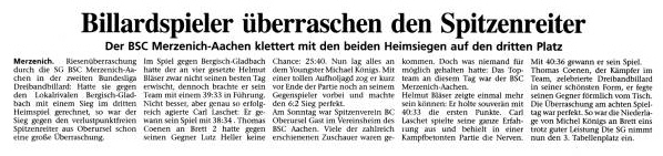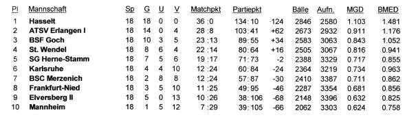 Nach 14 Jahren Zugehörigkeit zur 2. Bundesliga Dreiband Gruppe B ist
