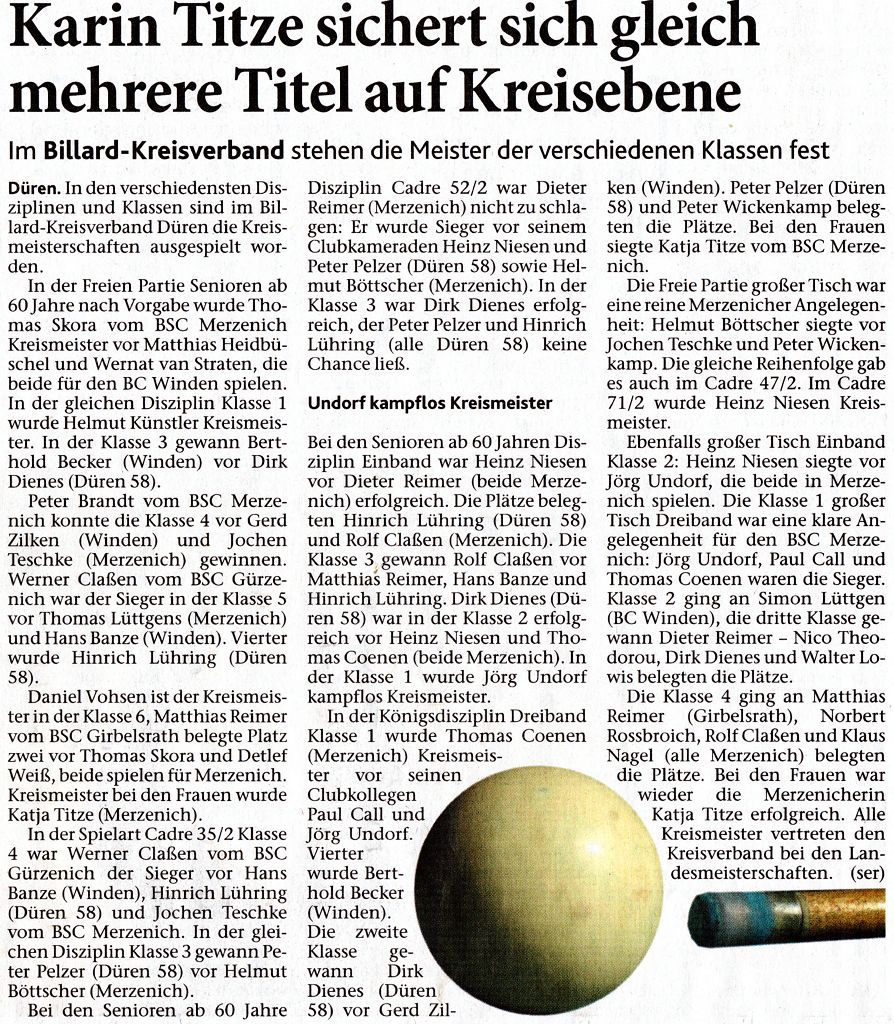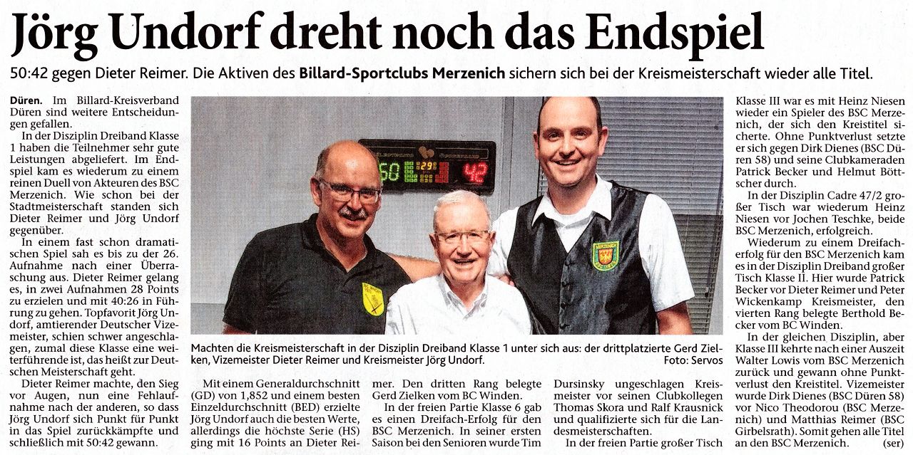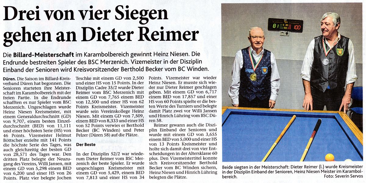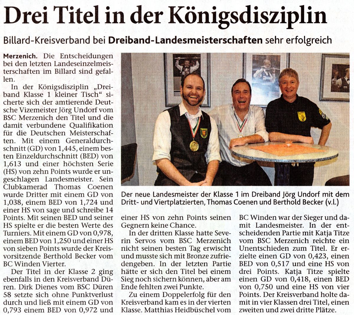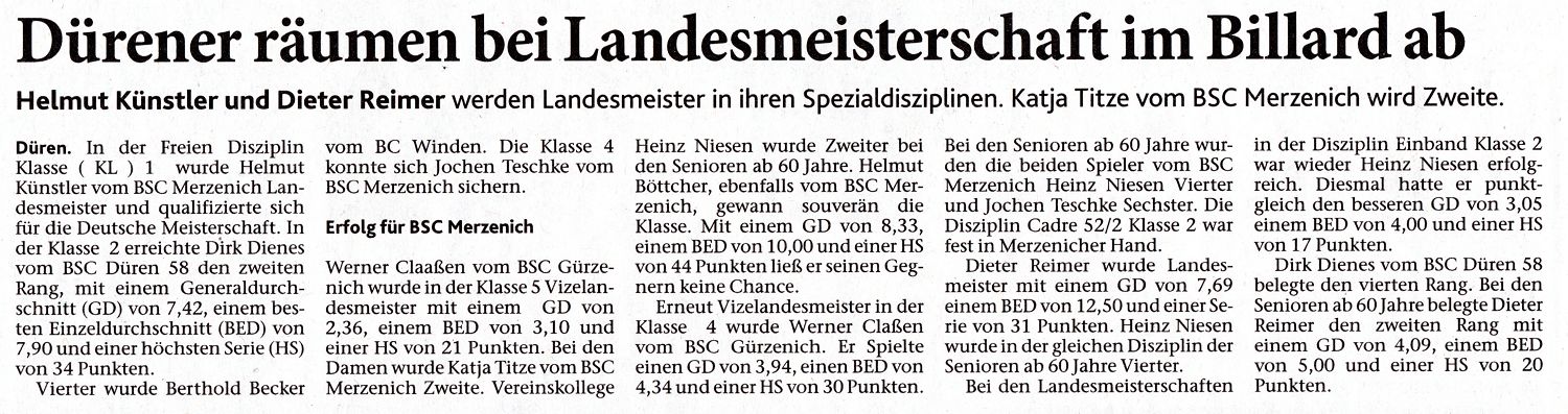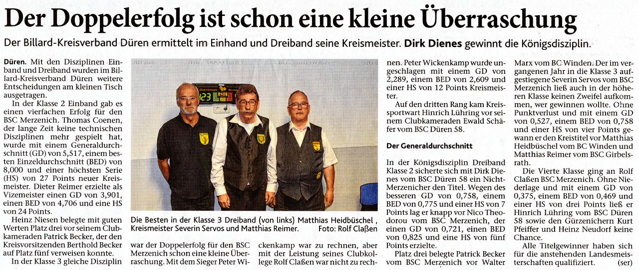 Kreisverband bei Dreiband - Landesmeisterschaften sehr