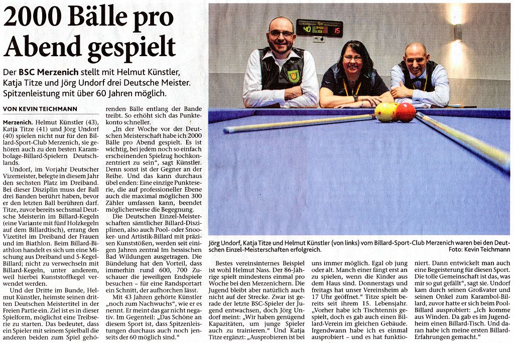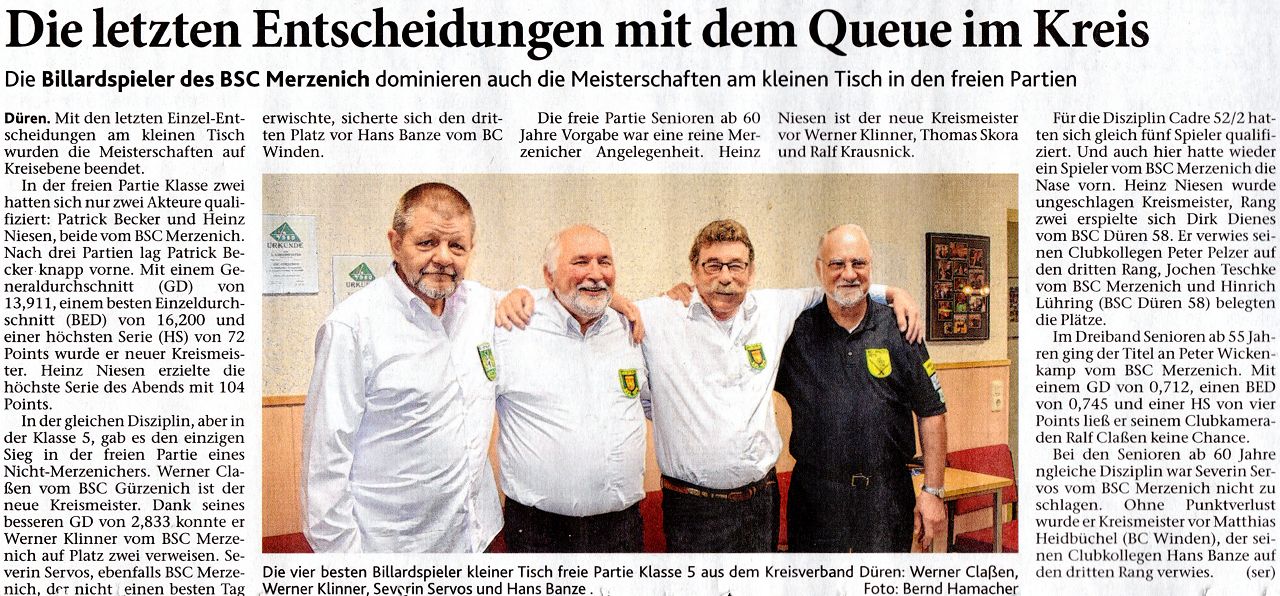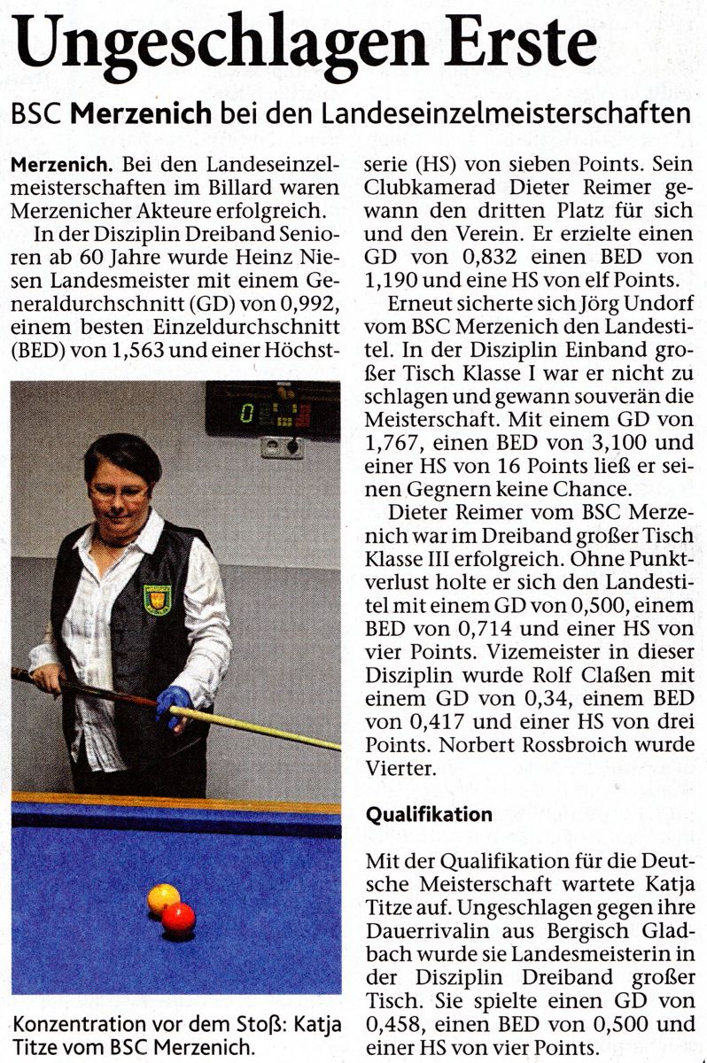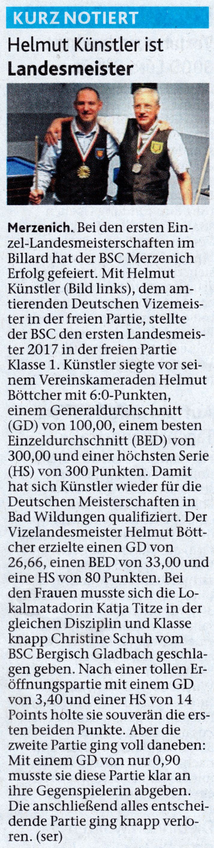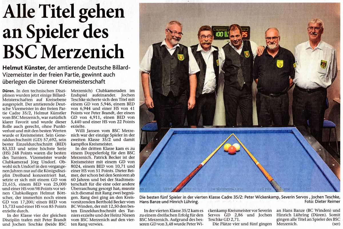 Kreisverband bei Dreiband - Landesmeisterschaften sehr
