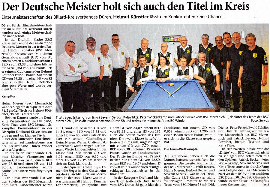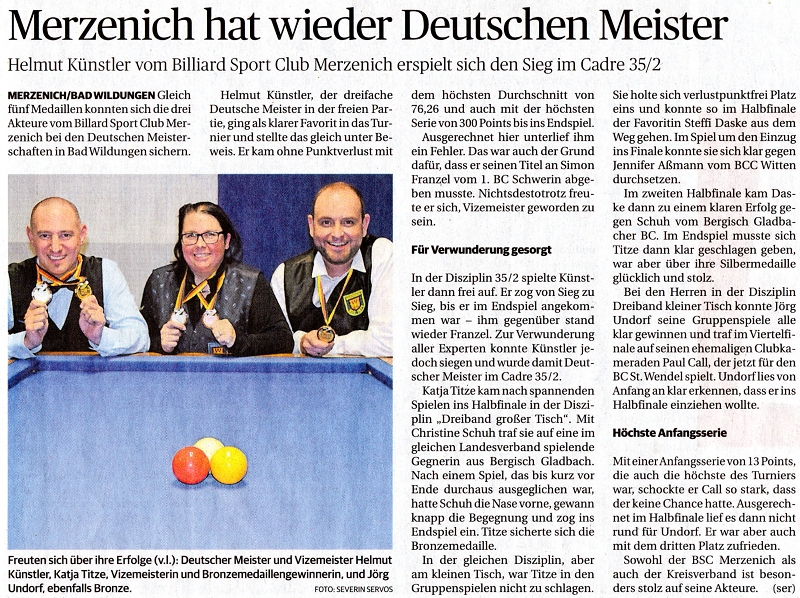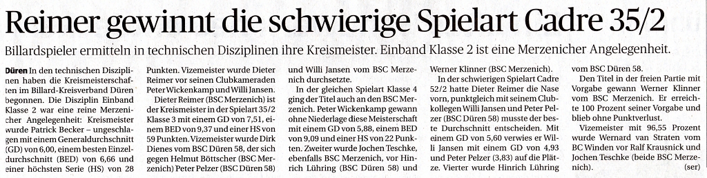 Reimer gewinnt die schwierige Spielart Cadre 35/2