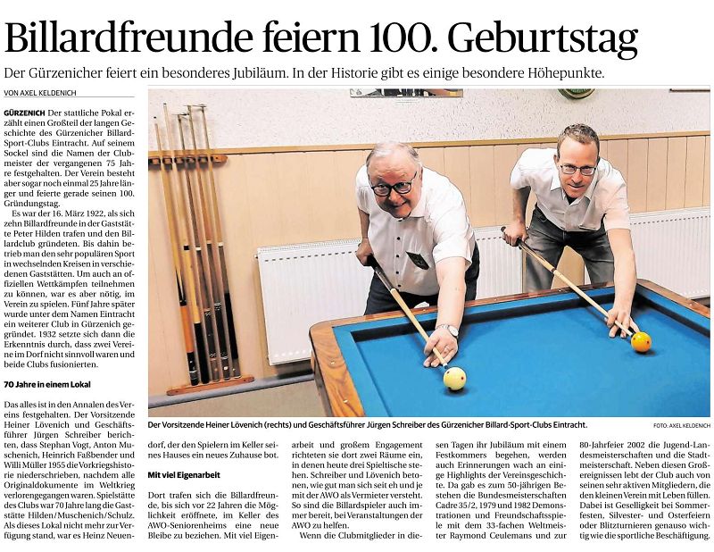 Billard - Presse im Kreis Düren