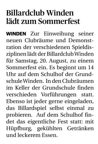 Billardclub Winden lädt zum