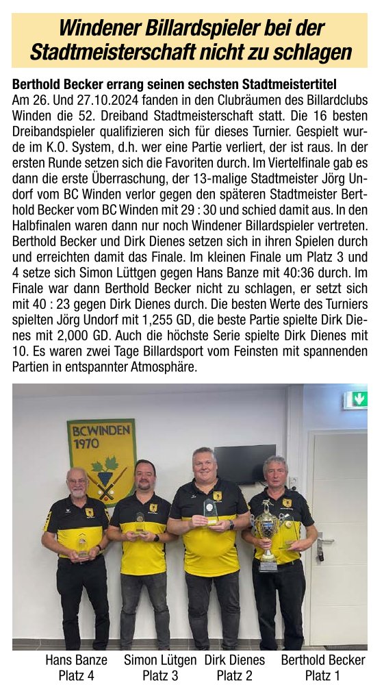 Billard - Presse im Kreis Düren