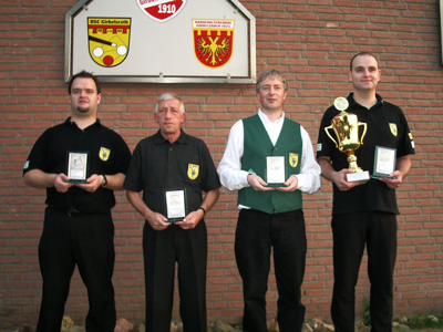 Simon Lüttgen, Walter Marx, Berthold Becker und Jörg Undorf Die ersten vier der 35.Stadtmeisterschaft im Dreiband vom 21/22 September 2007 in Girbelsrath |