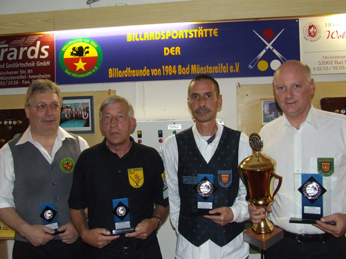 Lutz Schröer, Walter Marx, Heinz Rosenbaum und Helmut Bläser Die ersten vier der 37.Stadtmeisterschaft im Dreiband vom 18/19 September 2009 in Bad Münstereifel