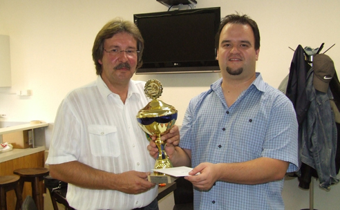 Carl Laschet, Sieger der 38.Stadtmeisterschaft im Dreiband, links im Bild und Simon Lüttgen, Kreissportwart, rechts im Bild 24/25 September 2010 in Merzenich
